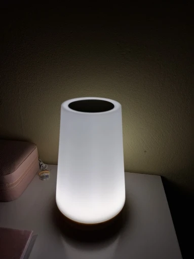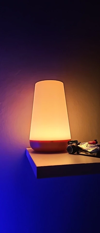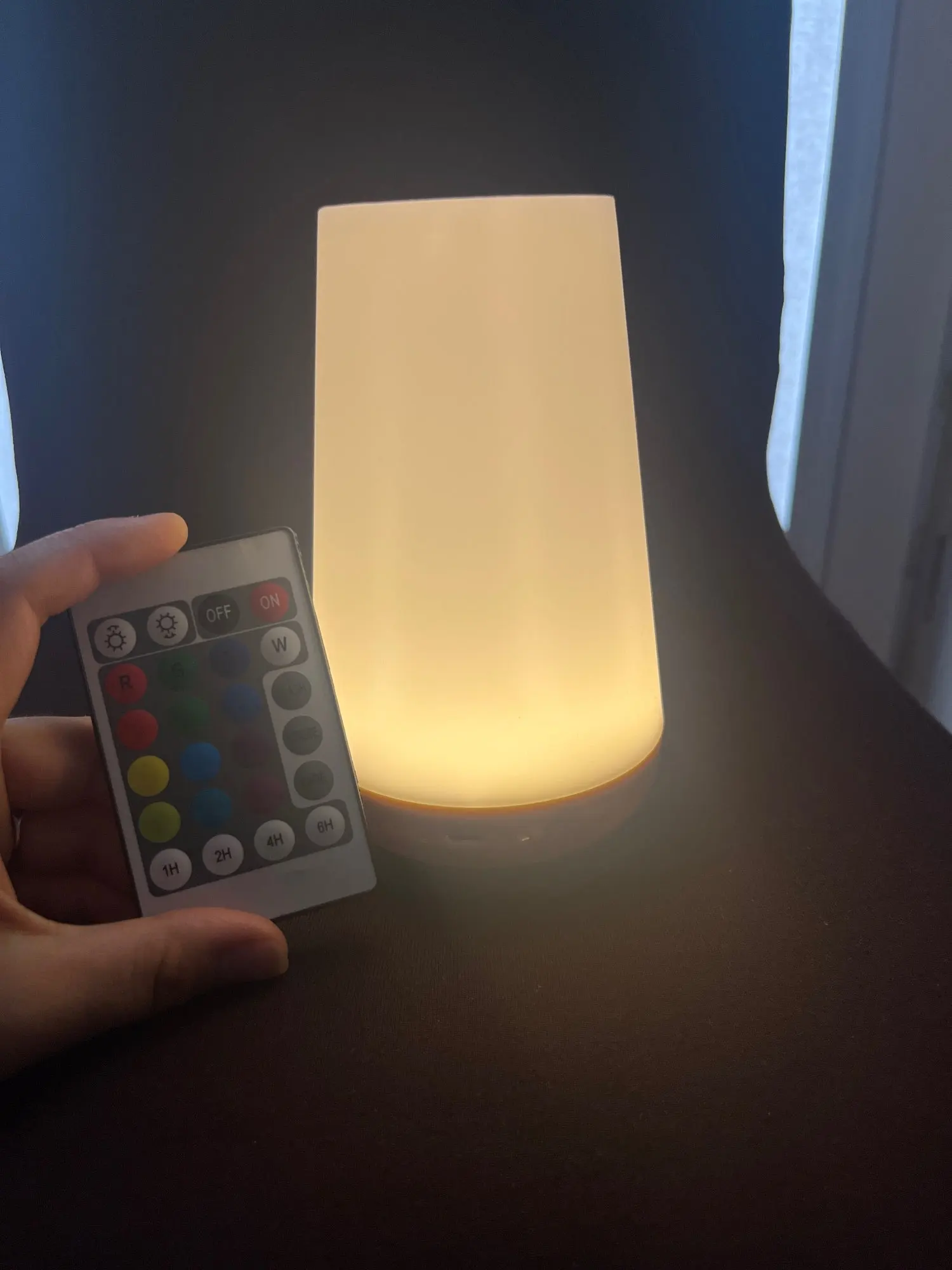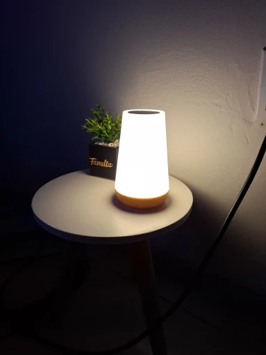 The lamp is very good, it added charm to my room, the top touch works well, the remote already comes with a battery and has various colors. It's possible to program a time to turn off by itself, it runs on battery and connects to USB C. The battery lasts about 3 days.