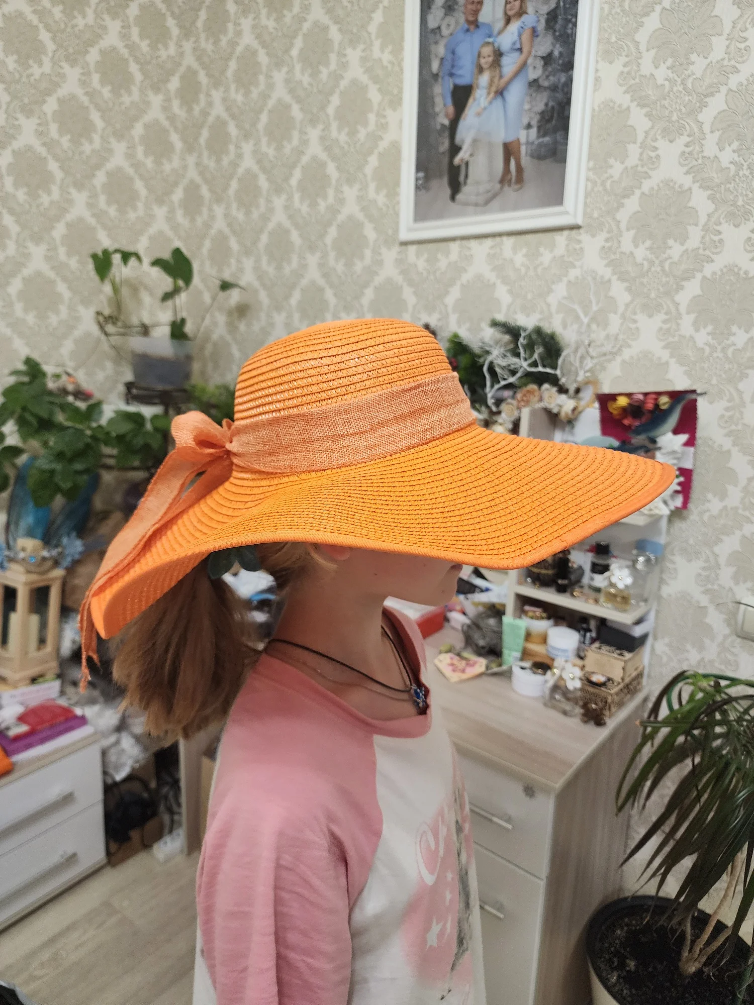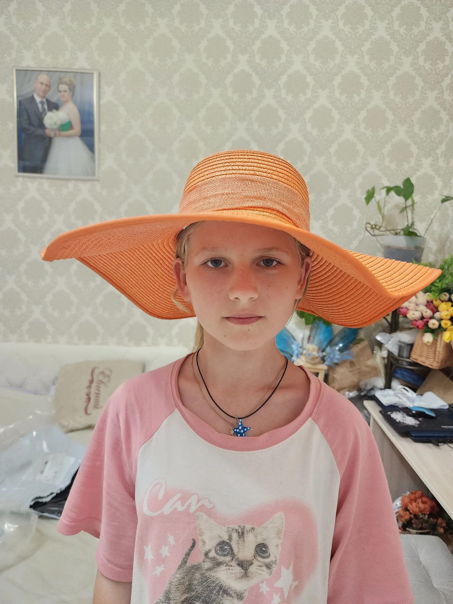 The order arrived early, the packaging was slightly damaged, but the hat was not affected. There was an elastic band on the hat, but I cut it off because it wasn't sewn evenly. I steamed the brim of the hat with a steamer because it got wrinkled during transportation, but it still didn't return to its normal shape completely. The hat fully matches the photo in the product card. The hat itself is heavy, but it will be suitable for a photoshoot.