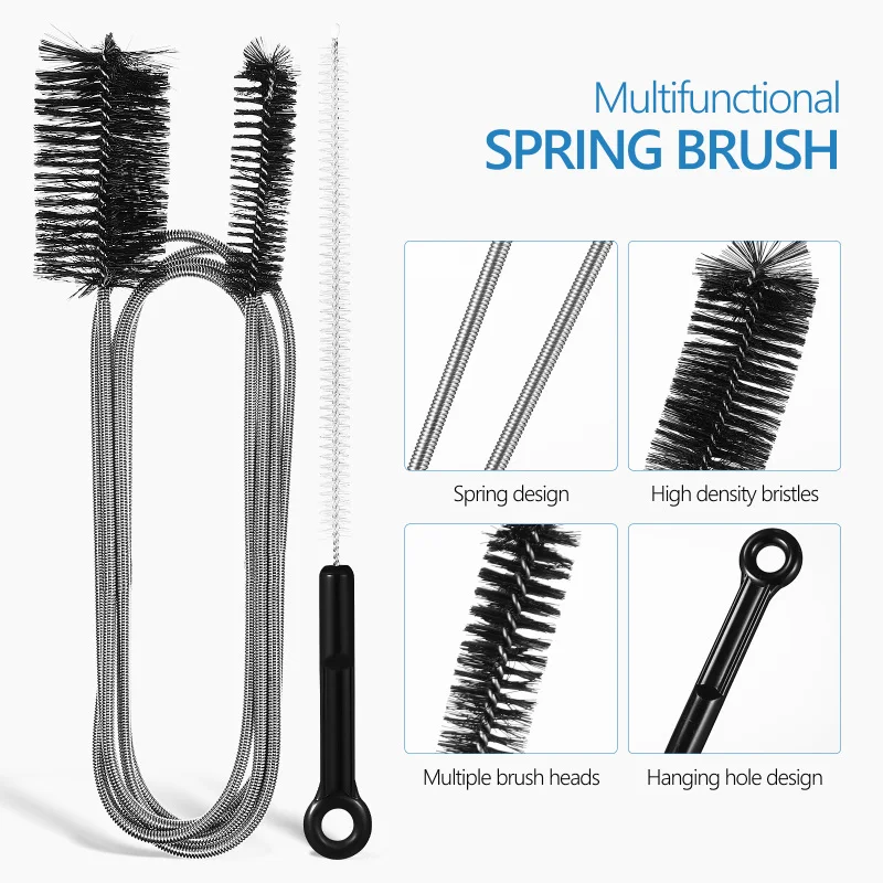 It's time to take control. Introducing FlexiClean, the extra-long, flexible brush designed to be your go-to solution for any clogged pipe or tube. Forget harsh chemicals that damage your pipes or clumsy tools that don't work. The secret to FlexiClean is its ingenious spring-steel core, allowing it to bend and navigate through complex U-bends and tight corners where blockages love to hide.