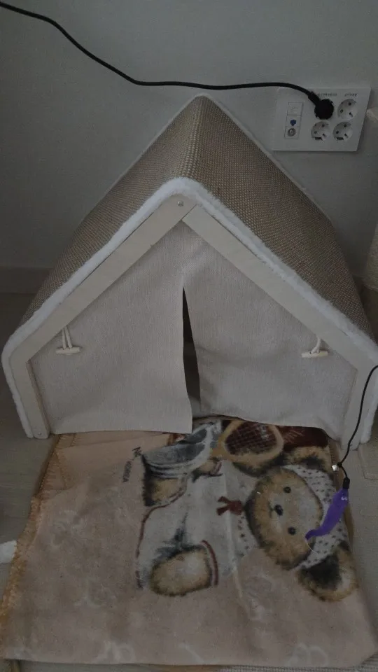 The house is very beautiful and its size is medium, suitable for the cat and its owner.
